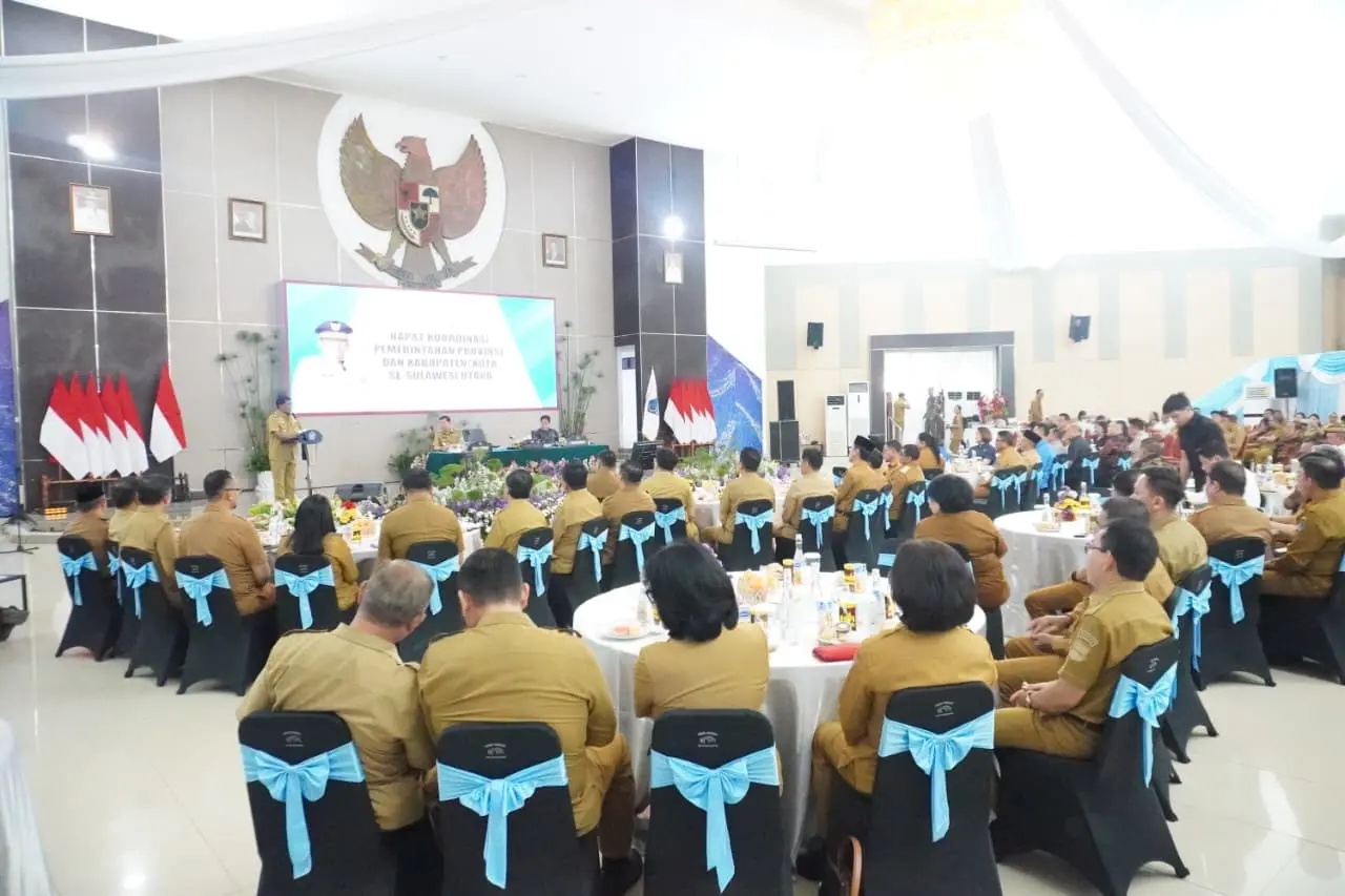 News Bolaang Uki – Gubernur Sulawesi Utara, Yulius Selvanus, memimpin langsung Rapat Koordinasi (Rakor) Optimalisasi Anggaran APBD 2025 dan Persiapan APBD 2026, yang berlangsung di kantor Gubernur, Selasa (30/9/2025). Rakor tersebut turut dihadiri oleh Wakil Gubernur Victor J. Mailangkay, Ketua DPRD Sulut, Pj. Sekprov Tahlis Gallang SIP MM, para Bupati dan Wali Kota se-Sulut, anggota DPRD, serta Tim Anggaran Pemerintah Daerah (TAPD) dari seluruh wilayah provinsi.